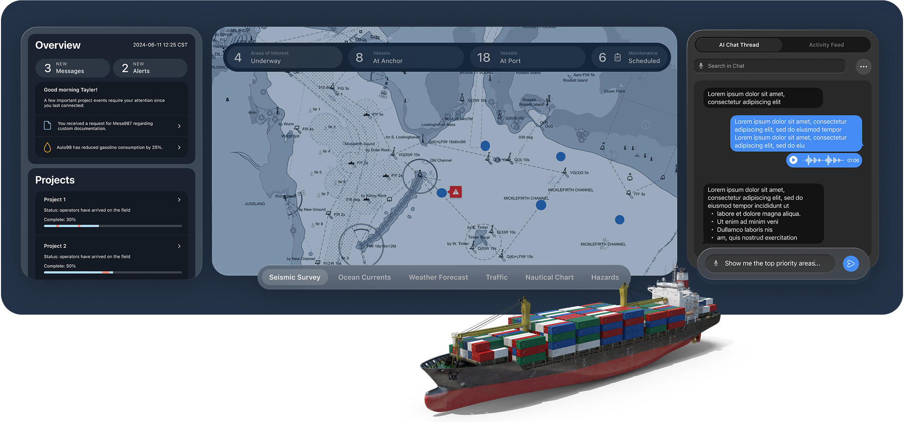 We unify disparate data sources into a seamless onshore and offshore view—enhancing situational awareness, worker safety (HSE), and mobile experiences across your maritime ecosystem.